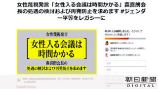 東京オリンピック(五輪)・パラリンピック大会組織委員会の森喜朗会長(83)の女性蔑視発言を受け、辞任などを求める署名活動が4日から、インターネット上で始まった。「次の世代のため」「スポーツの精神と反する」。立ち上げた人の思いは、様々だ。