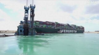 アジアとヨーロッパを結ぶ海上交通の要衝、エジプトのスエズ運河で、愛媛県の会社が所有する大型のコンテナ船が座礁し運河が通れなくなっている問題で、現地の管理当局は、船を安定させるため船底に入れているバラスト水を抜くなどして船を動きやすくしていて、28日も満潮時に離礁を試みることにしています。