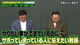 【画像】ミルクボーイがやりたい事があるのにサボってる人に教訓「夢を追っていた昔の自分に、今のサボってる姿を見せられるか?」