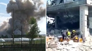 直後の映像では2階建ての鉄筋コンクリートの建物が激しく損傷しているのが確認できます。