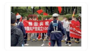 在日香港人やウイグル人のアンチ共産党デモのカウンターで共産党支持者が集結してた。