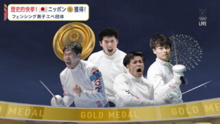 「エペ団体金メダルおめでとうございます」。メインキャスターの村上信五さん(39)が興奮した様子でこう声を上げると、スタジオ上部の映像でドームの屋根らしきものが開き、花火が打ち上がる夜空にフェンシングの選手4人の雄姿が現れた。