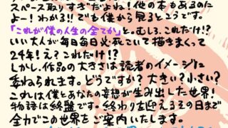 すいませんねー。全巻持ってくれてる人はもうスペース取りすぎだよね! 他の本もあるのによー! わかる!! でも僕から見るとこうです。「これが僕の人生の全てか」と。むしろ、これだけ!? いい大人が毎日毎日必死こいて描きまくって24年! え? これだけ!?