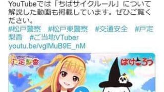 問題となった動画は、7月中旬に県警のツイッターとユーチューブに投稿された。千葉県松戸市のご当地VTuber「戸定梨香(とじょうりんか)」を起用し、自転車の交通ルールを呼びかける内容だ。