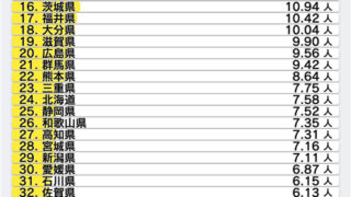 都道府県別 直近1週間の人口10万人あたりの感染者数