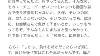 まあ試合に負けてから、しかも本人ではなく第三者の口を借りて暴露っていうのは最高にカッコ悪いな