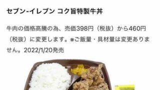 【悲報】セブンイレブン 牛丼を値上げ 売価398円(税抜)から460円(税抜)