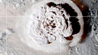 日本時間の15日午後1時10分ごろに発生した南太平洋のトンガ諸島での大規模な火山噴火。