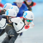 ◇マススタート 大勢の選手が一斉にスタート、レーンに関係なく滑り、順位を競う。決勝は16人の戦い。1〜3位はゴールした順で順位が決まるり、4位以下は4周ごとの順位に応じて獲得するポイントの合計で決まる。