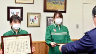 店員のMさん(41)とNさん(41)に署長感謝状を贈った。