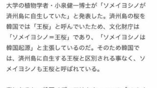 これ確かハングル翻訳で桜がソメイヨシノになるのが原因じゃなかったか王桜は済州島に自生する桜だがごっちゃになる