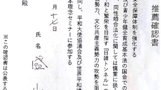 文部科学相の盛山正仁の推薦状は統一側のリークだ、