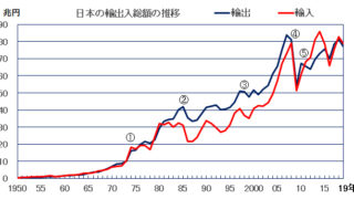 1ドル360円時代の日本は輸出入額が今の1/10程度