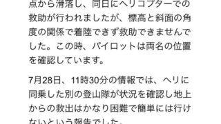数日経過も滑落地点から二人の動きが無いとの事なので