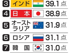 【シドニー共同】オーストラリアのシンクタンク、ローウィー研究所が22日発表したアジア太平洋の27カ国・地域の実力調査「アジアパワーインデックス」によると、総合力で日本はインドに抜かれ、2018年の調査開始以来初めて3位から4位に後退した。長引く経済不振が要因と指摘した。米国が昨年の前回調査に続いて首位。中国、インドが続いた。