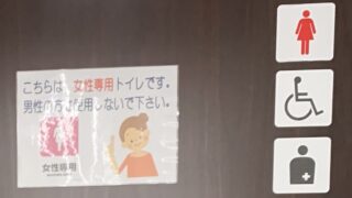 こちらは、女性専用トイレです。男性の方は使用しないで下さい」と書かれた張り紙が掲示