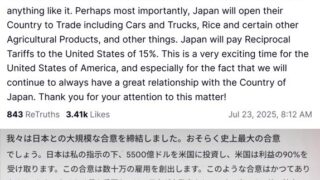 いやトランプが米も15%になるって書いてるやん