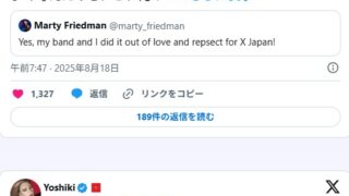 続く投稿では「自分のことを書かれた本が出版されるまでは、自分は”Yoshiki”だけを名乗っていた、父が自ら命をたった、と言う事実と今に至るまで、むきあえないまま生きてきたから」と本名の姓を名乗らず活動していた理由を明かした上で、「とても複雑な気持ち、みんな、悪気わないのはわかってるっけと.. 心が痛いしなぜか涙が出た」(原文のまま)とつづった。
