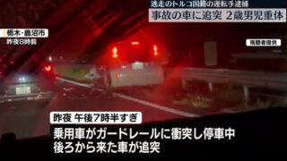 追突した車に乗っていた親子3人は全員搬送され、2歳の男の子が意識不明の重体、6歳の男の子も腹部を強く打つなどして重傷だということです。