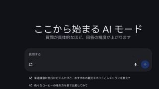 これまでもGoogle検索では、検索結果の方に「AIによる概要」を提供してきたが、AIモードでは検索窓というよりは、一般のAIを使うときのような「質問窓」が表示される。