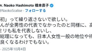 石破さんが全男性の代表でなかったのと同様に、高市さんは1ミリも私を代表しないし、