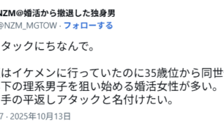 アカウント名に婚活から撤退した独身男とか入ってるのが悲しい