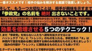 相手が興味持つまで政党名は絶対出すなってそれ某宗教団体がやってなかったか