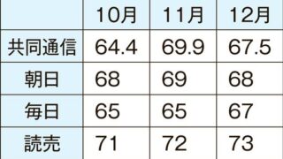 「なぜこんなに支持率が高いのかな」。政府高官は22日、報道各社の調査結果に驚いた表情を隠さなかった。共同通信社が12月に行った世論調査で支持率は67.5%と政権発足以降3カ月連続で60%を超えた。各社の調査でも軒並み高水準だ=表=。