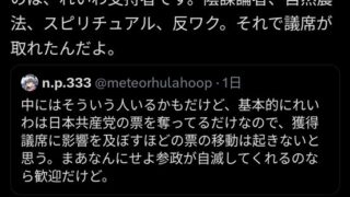 元々スピリチュアルとかオーガニックの人はれいわにハマってたんよな。そこを参政党が奪い取った