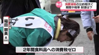 自民党の稲田候補は、物価高に負けない賃上げを実現するまでの2年間、食料品の消費税を0%にすると訴えます。