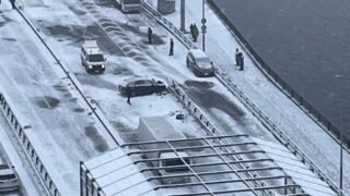 8日午前、東京・中央区にある築地大橋で3件の事故が相次ぎ、あわせて7台が事故に巻き込まれ、6人がケガをしました。