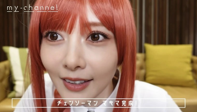 YouTubeでは「【誰?】チェンソーマンのコスプレに挑戦してみた!」と題した動画を投稿し、『チェンソーマン』マキマのコスプレ&メイクを披露。「ウィッグ着けてきまーす!」「カラコン入れてます」とコスプレを楽しんだ。