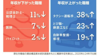【画像】年収が上がった職種、下がった職種
