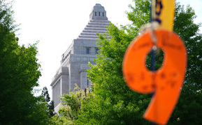 国会前で改憲に反対するデモが開かれ、憲法9条を象徴する「9」の数字が掲げられた=2026年4月19日午後1時41分、東京都千代田区、西岡臣撮影