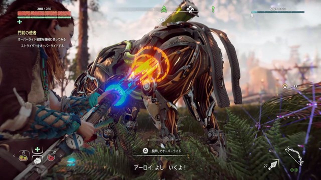 このゲームは基本的に機械である敵を狩るゲームなのだが、時には味方にして騎乗することも可能。