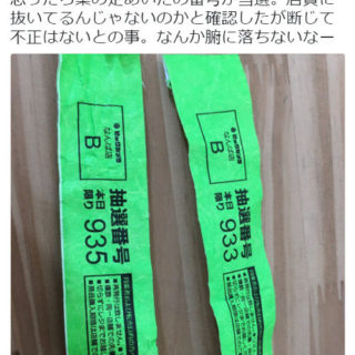 具体的には933番と935番を受け取った。934番が疑惑の抽選券かと思ったら抜けていた934番がまさかの当選である。