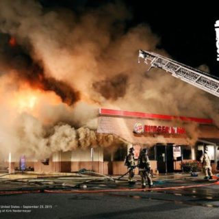 海外バーガーキングの広告、「お肉が直火焼であること」を訴求するために、実際マジで火事になった店舗の風景をポスターにしてて振り切り方が尋常じゃない