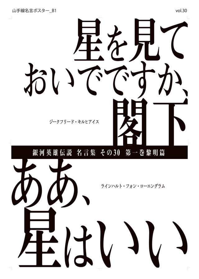 アニメ「銀河英雄伝説 Die Neue These(ディ・ノイエ・テーゼ)」の公開を記念し、本日4月2日から8日まで「『銀河英雄伝説』名言ポスター」がJR東日本の山手線全29駅ホームに掲出される。