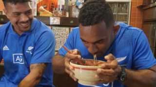 スポーツ 【ラグビーW杯】(画像)オールブラックス「本場のラーメンうめえ」 南アフリカ代表「本場の寿司うめえ」