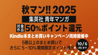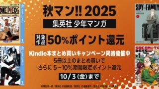 セール・お得情報 【朗報】Amazon「秋マン!!2025 集英社 第2弾(青年マンガ)50%還元」をこっそり開催してしまう