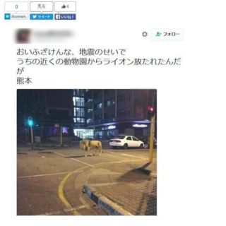 ネット・SNS 【熊本地震】デマツイートに注意 「朝鮮人が井戸に毒を投げ込んだ」「ライオンが逃亡」…ニセ写真まで