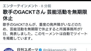 健康・病気 【悲報】歌手のGACKT、重度の発声障害で芸能界無期限の活動休止