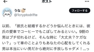 恋愛・結婚 女子力MAX人「彼氏と結婚するか悩むなら彼氏の車にコーヒーをぶち撒けなさい」