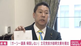 政治 ガーシー議員は「今は帰国しない」 NHK党・立花党首が説明文書を提出 除名なら「次の参院選に再び立候補させたい」