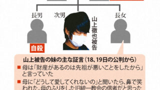 社会・時事 【悲報】山上被告の妹「母は暗がりで祈り、気持ちが悪いと思った」