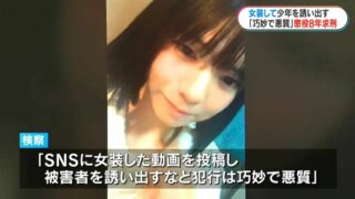 社会・時事 【悲報】「女装して連絡を取った」少年へみだらな行為、不同意性交罪などに問われている男(23) 懲役8年を求刑