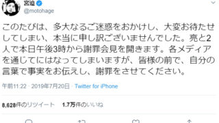 芸能 宮迫博之が20日の15時から田村亮と共に会見 「引退しないで」「日本の業界には必要」の声多数
