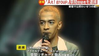 芸能 【悲報】「Aぇ!group」の草間リチャード敬太容疑者(29)がおちんちんびろーんして逮捕される