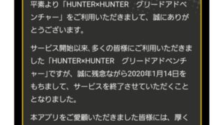 ハンターハンターの休載は2018年11月26日〜なのでサービス中に一度もハンターハンターが連載されることは無かった