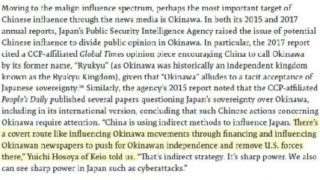 スチュワート氏は「メディアを通した中国の影響力の最も重要なターゲットは恐らく沖縄だろう」と記述。